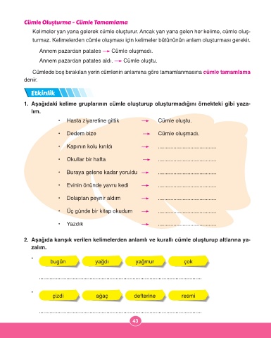 Cümle Oluşturma - Cümle Tamamlama