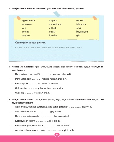 5. Aşağıdaki cümleleri “daha, kadar, çünkü, veya, ve, kısacası” kelimelerinden uygun ola-