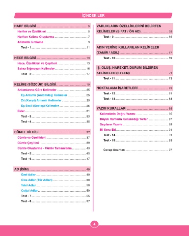 Harften Kelime Oluşturma ........................................ 7 Test - 9 .................................................................. 65