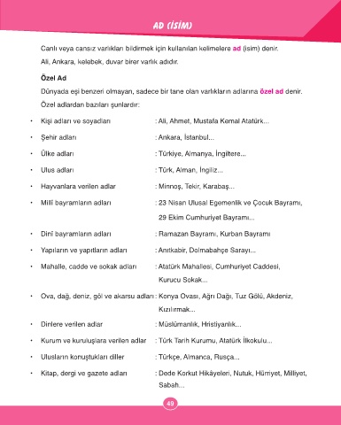 • Kişi adları ve soyadları : Ali, Ahmet, Mustafa Kemal Atatürk...