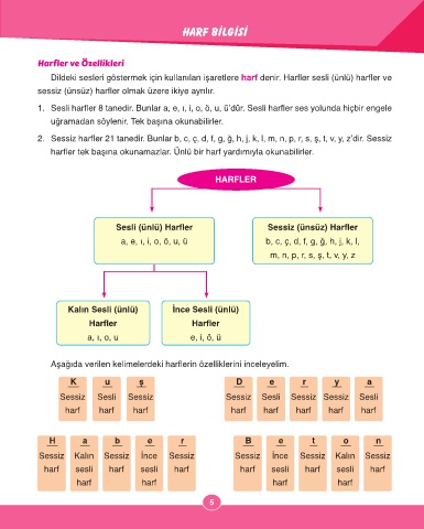 Dildeki sesleri göstermek için kullanılan işaretlere harf denir. Harfler sesli (ünlü) harfler ve