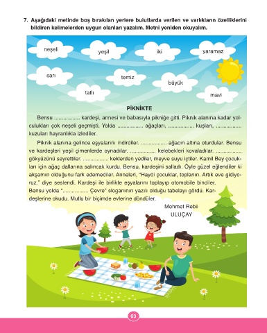 Bensu ................. kardeşi, annesi ve babasıyla pikniğe gitti. Piknik alanına kadar yol-