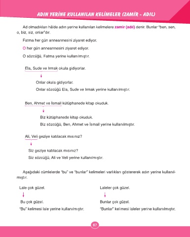 Aşağıdaki cümlelerde “bu” ve “bunlar” kelimeleri varlıkları göstererek adın yerine kullanıl-