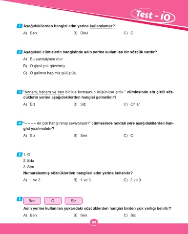 2 Aşağıdaki cümlelerin hangisinde adın yerine kullanılan bir sözcük vardır?