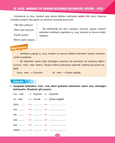 kelimeleri varlıkların yaptıkları iş, oluş, hareket ve durumu bildir-