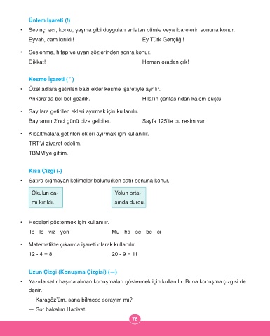 • Satıra sığmayan kelimeler bölünürken satır sonuna konur.