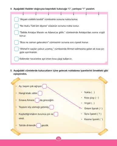 5. Aşağıdaki cümlelerde kutucukların içine gelecek noktalama işaretlerini örnekteki gibi