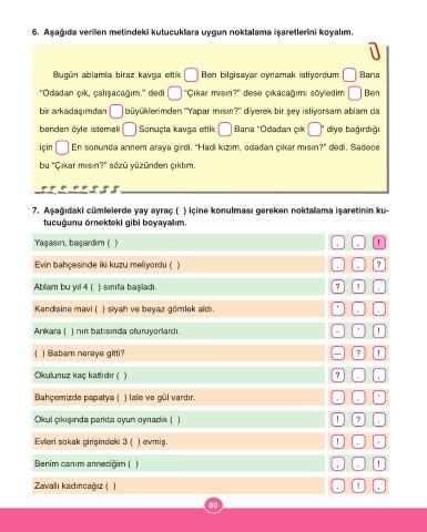 6. Aşağıda verilen metindeki kutucuklara uygun noktalama işaretlerini koyalım.