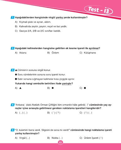 1 Aşağıdakilerden hangisinde virgül yanlış yerde kullanılmıştır?