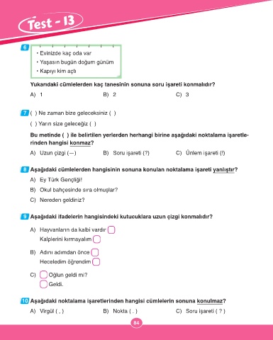 10 Aşağıdaki noktalama işaretlerinden hangisi cümlelerin sonuna konulmaz?