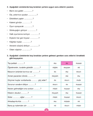 2. Aşağıdaki cümlelerde boş bırakılan yerlere uygun soru eklerini yazalım.