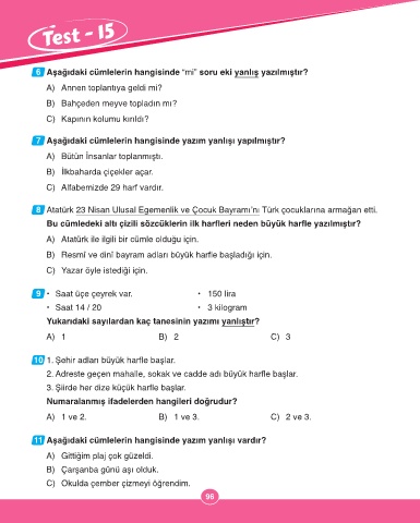6 Aşağıdaki cümlelerin hangisinde “mi” soru eki yanlış yazılmıştır?