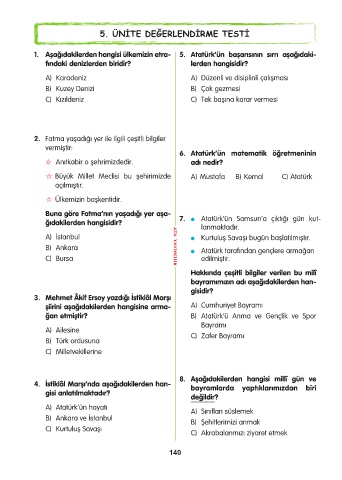 5. ÜNİTE DEĞERLENDİRME TESTİ