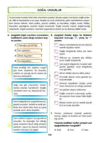 A. Aşağıdaki doğal unsurların numaralarını B. Aşağıdaki ifadeler doğru ise ifadelerin