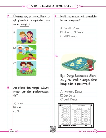 7. Ülkemize göç etmiş çocuklarla il- 9. Millî marşımızın adı aşağıdaki-