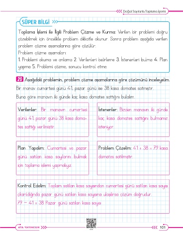 20 Aşağıdaki problemin, problem çözme aşamalarına göre çözümünü inceleyelim.