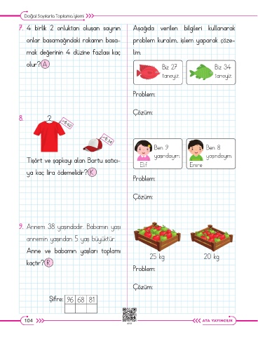 onlar basamağındaki rakamın basa- problem kuralım, işlem yaparak çöze-
