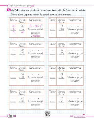 25 Aşağıdaki çıkarma işlemlerinin sonuçlarını örnekteki gibi önce tahmin edelim.