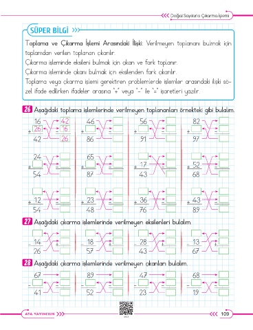 Toplama ve Çıkarma İşlemi Arasındaki İlişki: Verilmeyen toplananı bulmak için