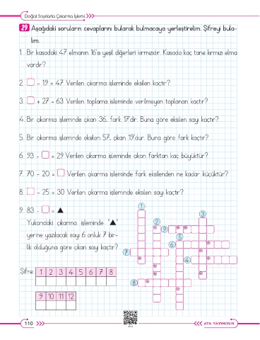 29 Aşağıdaki soruların cevaplarını bularak bulmacaya yerleştirelim. Şifreyi bula-
