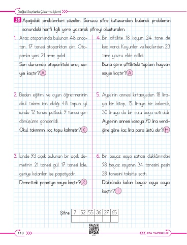 38 Aşağıdaki problemleri çözelim. Sonucu şifre kutusundan bularak problemin