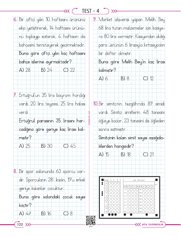 6. Bir çiftçi yılın 10 haftasını ürününü 9. Market alışverişi yapan Melih Bey