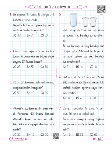 4. Ahmet’in cüzdanında 84 lirası var- 7. Cengiz manavdan 12 elma, 17 ar-