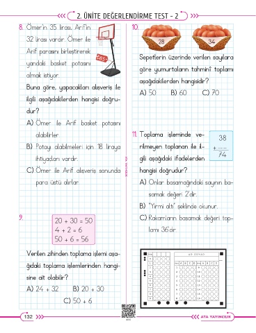 9. 20 + 30 = 50 C) Rakamların basamak değeri top-