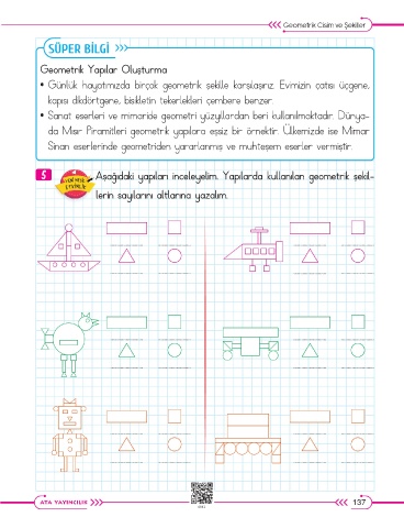 5 Aşağıdaki yapıları inceleyelim. Yapılarda kullanılan geometrik şekil-