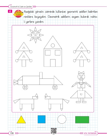 renklere boyayalım. Geometrik şekillerin sayısını bularak nokta-