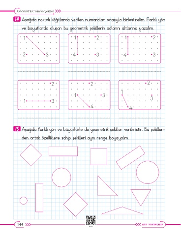 14 Aşağıda noktalı kâğıtlarda verilen numaraları sırasıyla birleştirelim. Farklı yön