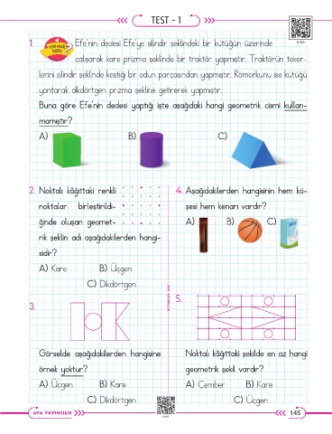 Buna göre Efe’nin dedesi yaptığı işte aşağıdaki hangi geometrik cismi kullan-