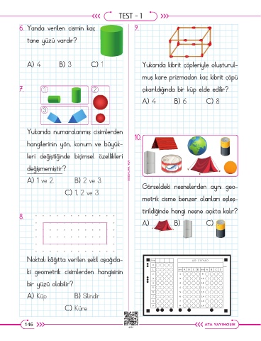 ki geometrik cisimlerden hangisinin 1 2 Soru A B C D Soru A B C D