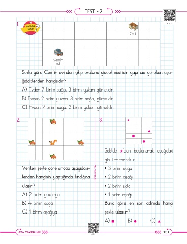 Verilen şekle göre sincap aşağıdaki- • 3 birim sağa