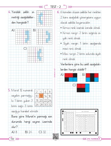 4. Yandaki şeklin si- 6. 6 kareden oluşan şekilde her renkten