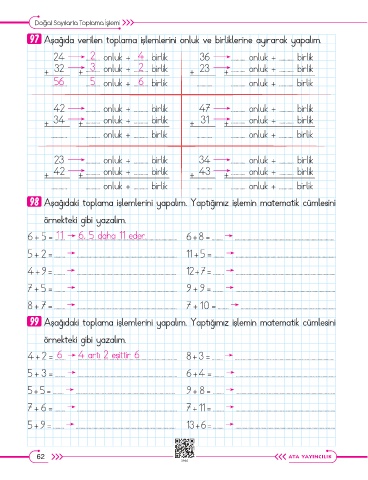 97 Aşağıda verilen toplama işlemlerini onluk ve birliklerine ayırarak yapalım.