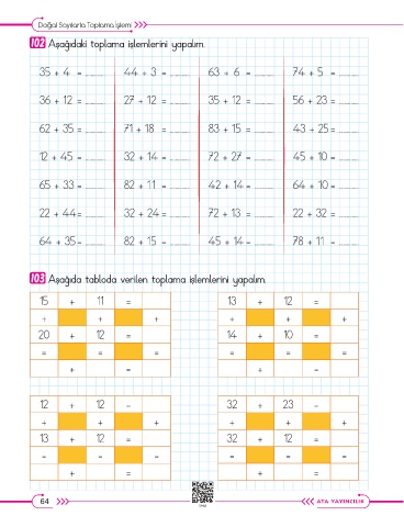 102 Aşağıdaki toplama işlemlerini yapalım.