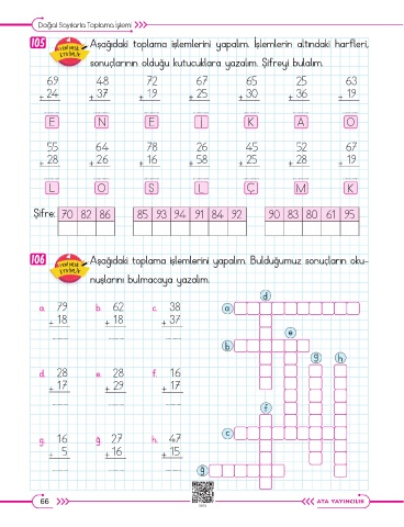 105 Aşağıdaki toplama işlemlerini yapalım. İşlemlerin altındaki harfleri,