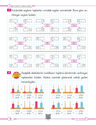 ETKINLIK toplananları bulalım. Abaküs üzerinde göstererek noktalı yerleri