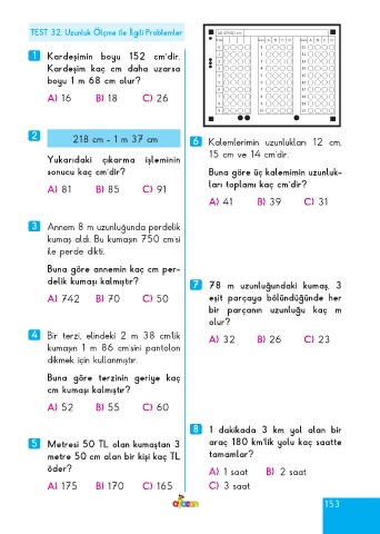 Page 153 - ATA YAYINCILIK 3. Sınıf Afacan Soru Bankası