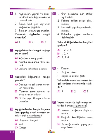 Page 218 - ATA YAYINCILIK 3. Sınıf Afacan Soru Bankası