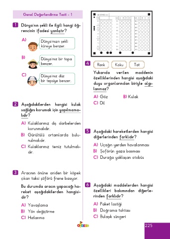 Page 225 - ATA YAYINCILIK 3. Sınıf Afacan Soru Bankası