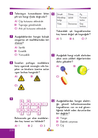 Page 230 - ATA YAYINCILIK 3. Sınıf Afacan Soru Bankası