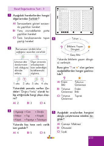 Page 233 - ATA YAYINCILIK 3. Sınıf Afacan Soru Bankası