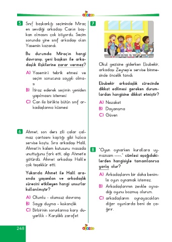 C) Can ile birlikte bütün sınıf ar- A) Nezaket