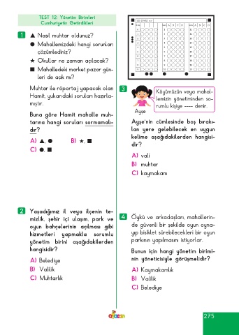 Page 275 - ATA YAYINCILIK 3. Sınıf Afacan Soru Bankası