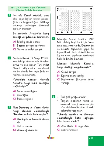 Page 281 - ATA YAYINCILIK 3. Sınıf Afacan Soru Bankası