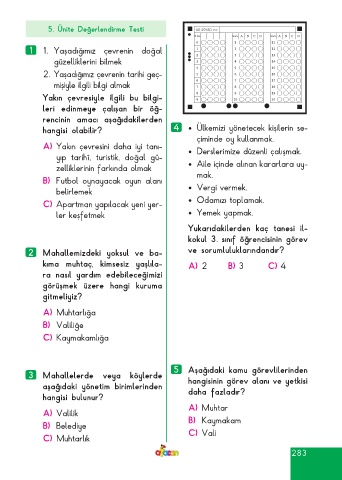 Page 283 - ATA YAYINCILIK 3. Sınıf Afacan Soru Bankası