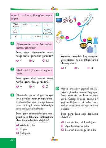 6 ve 7. soruları krokiye göre cevap- 9