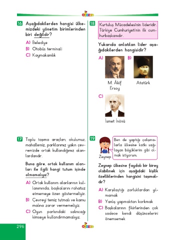 Page 296 - ATA YAYINCILIK 3. Sınıf Afacan Soru Bankası